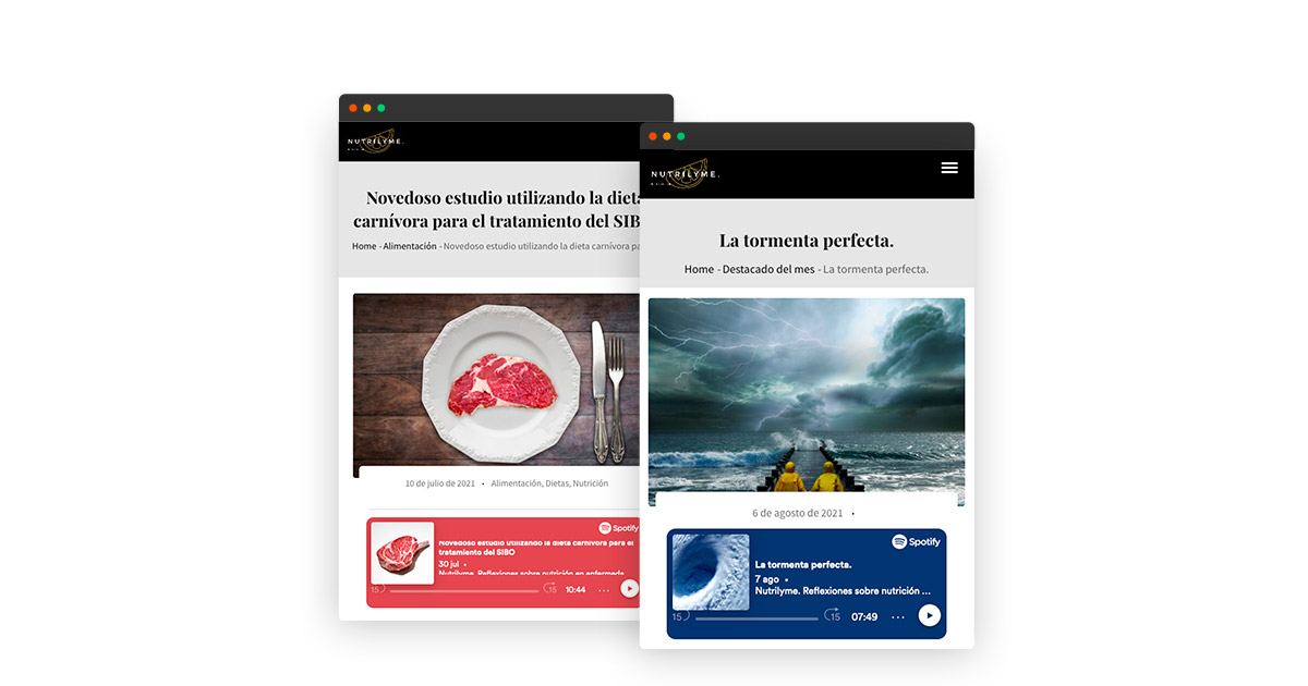 Una de las funcionalidades estrella de la página, es la integración con Spotify. Cada post está integrado con Spotify y permite añadir podcasts en dichos posts en un momento, para que los usuarios puedan acceder al audio del post.